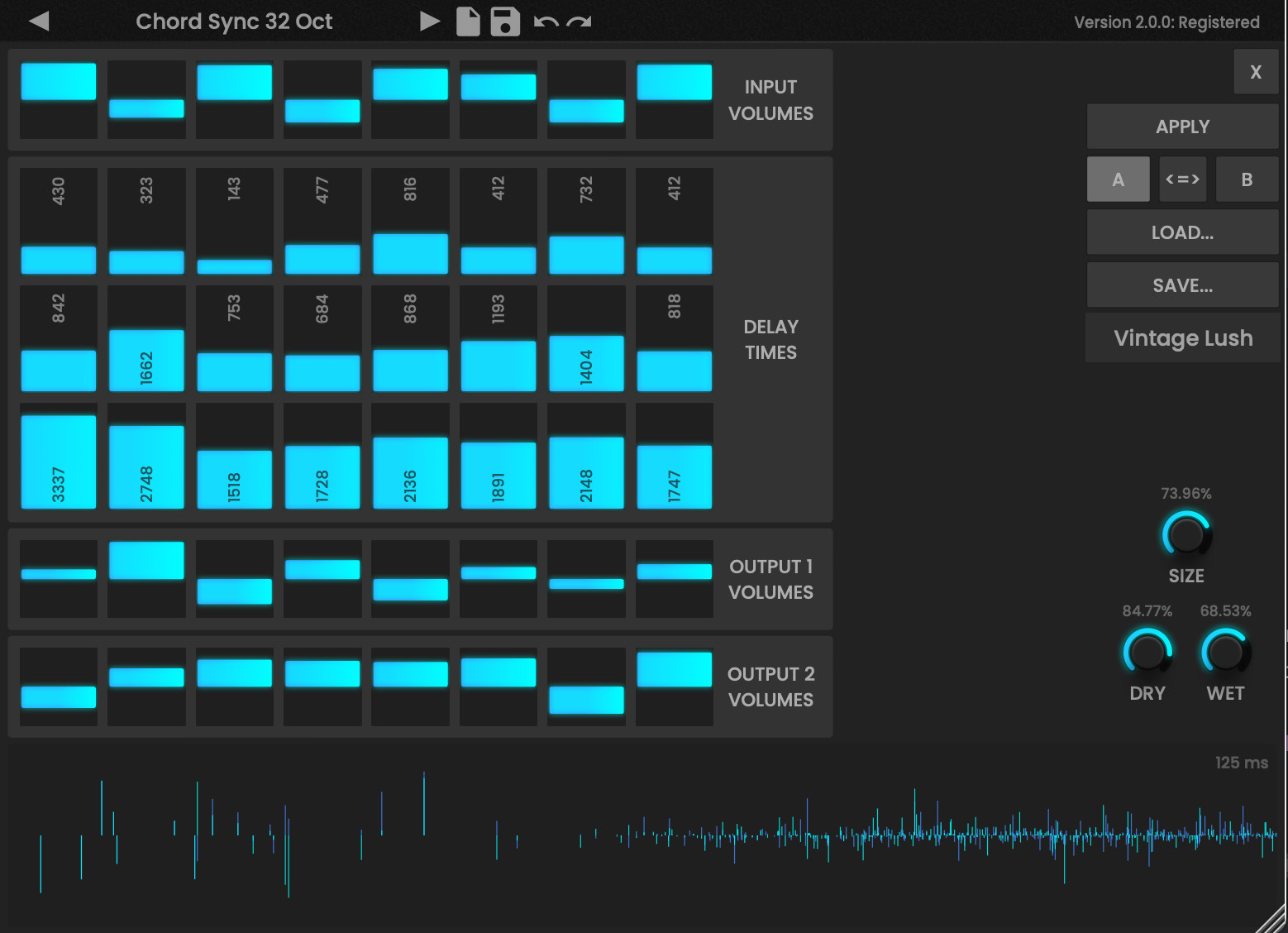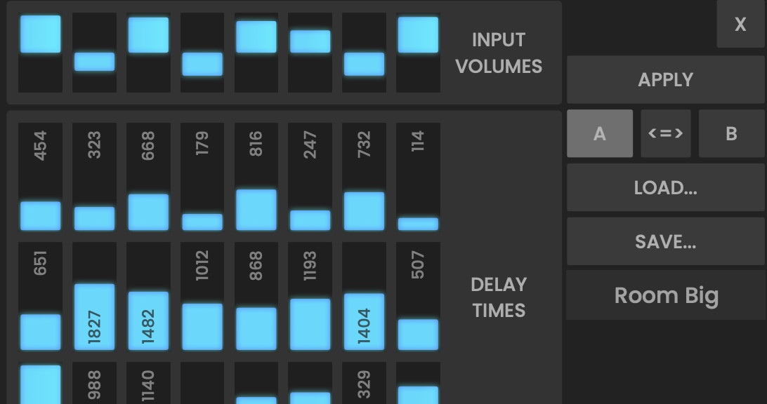 By default, the plug-in has various carefully tuned delay settings pre-installed. However, it also allows you to create your own delay/reverb templates, which can then be used in the presets. A complex network between the delay lines ensures that the delays do not have to be perfectly adjusted to sound good.